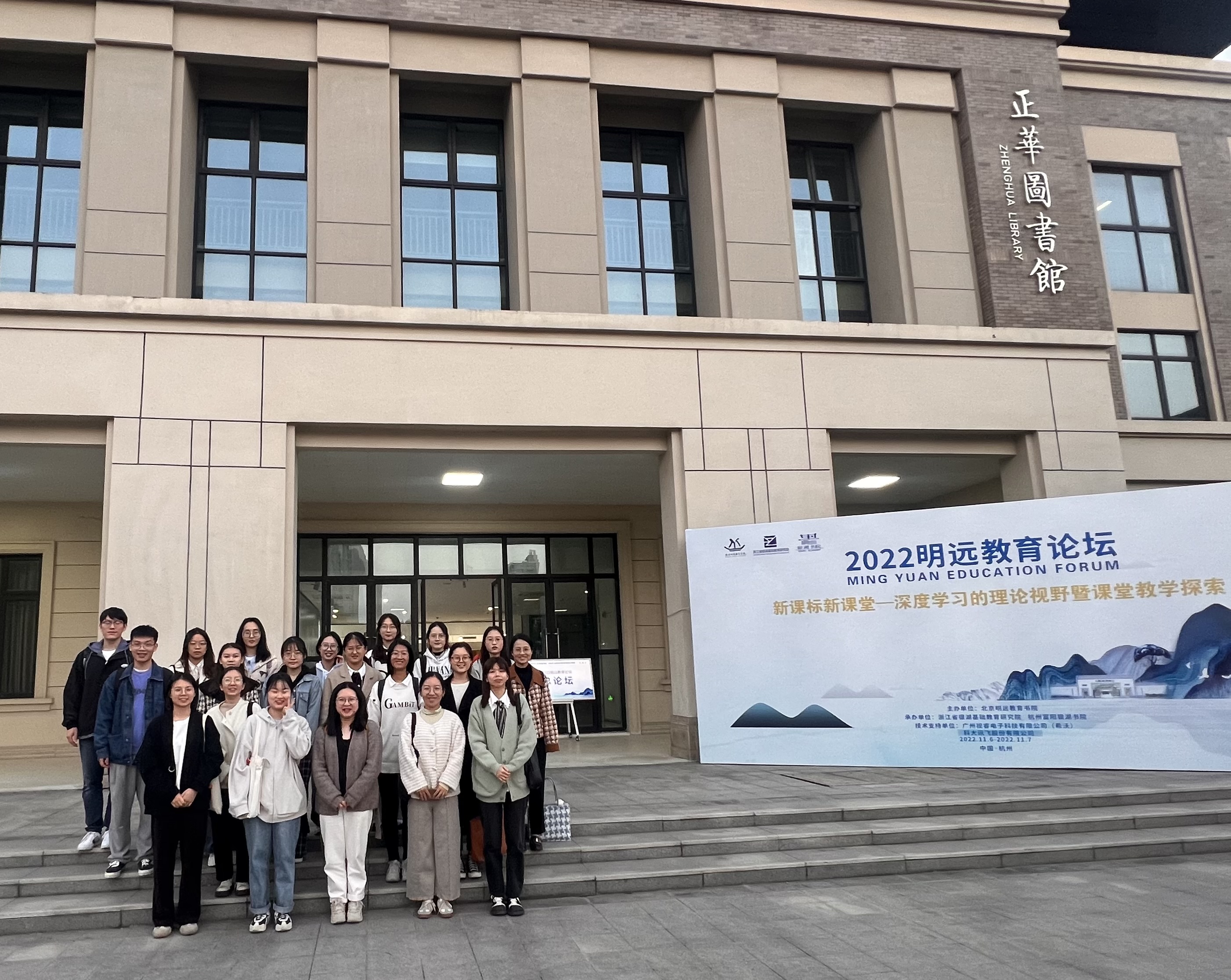 2022年11月6-7日,2021级色情视频 学科教学(英语)专业全体同学在外语色情视频 谢萍教授带领下参加了在杭州富阳银湖书院举办的主题为“新课标新课堂——深度学习的理论视野暨课堂教学探索”的2022明远教育论坛。这是本学期《教学理论与案例分析》课程的一次重要见习安排。