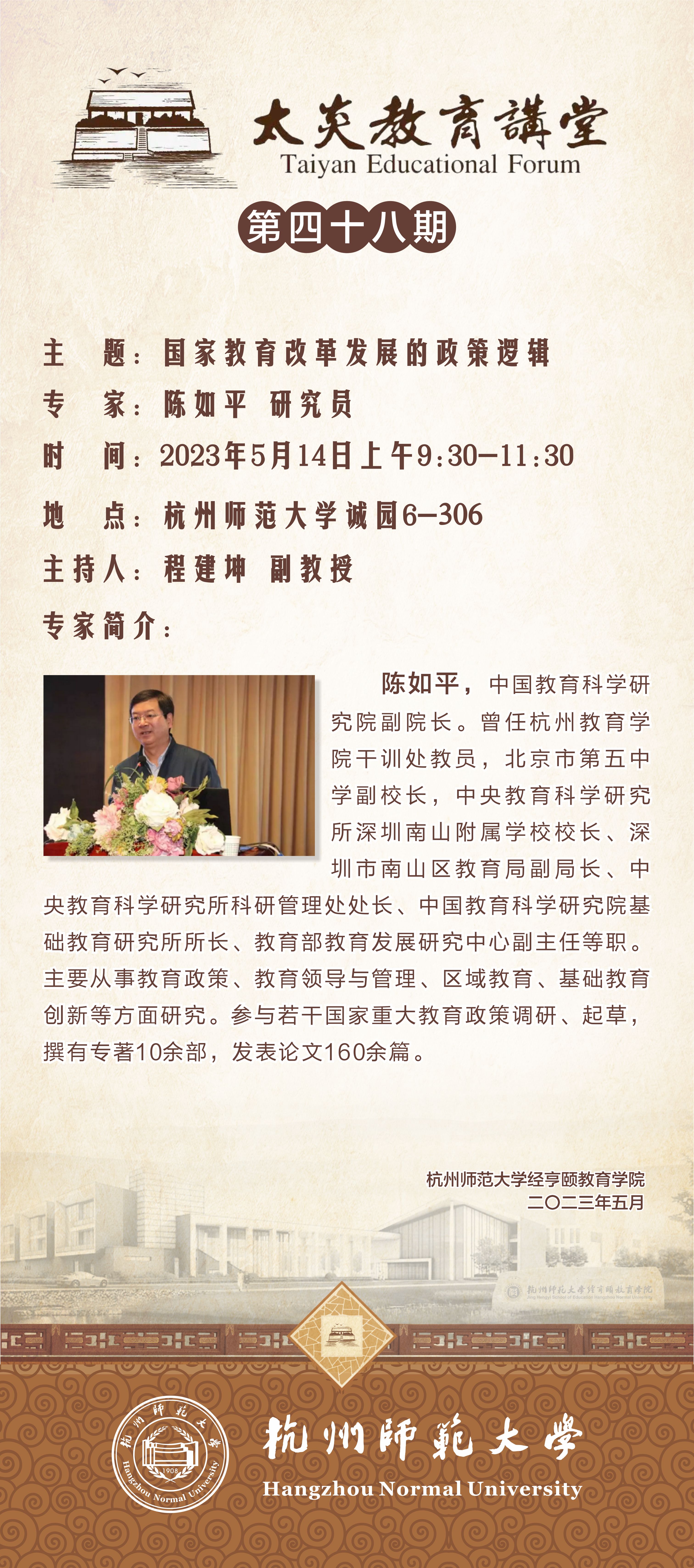 陈如平,中国教育科学研究院副院长。曾任杭州教育色情视频 干训处教员,北京市第五中学副校长,中央教育科学研究所深圳南山附属学校校长、深圳市南山区教育局副局长、中央教育科学研究所科研管理处处长、中国教育科学研究院基础教育研究所所长、教育部教育发展研究中心副主任等职。主要从事教育政策、教育领导与管理、区域教育、基础教育创新等方面研究。参与若干国家重大教育政策调研、起草,撰有专著10余部,发表论文160余篇。