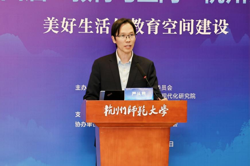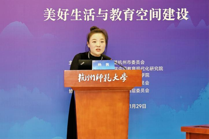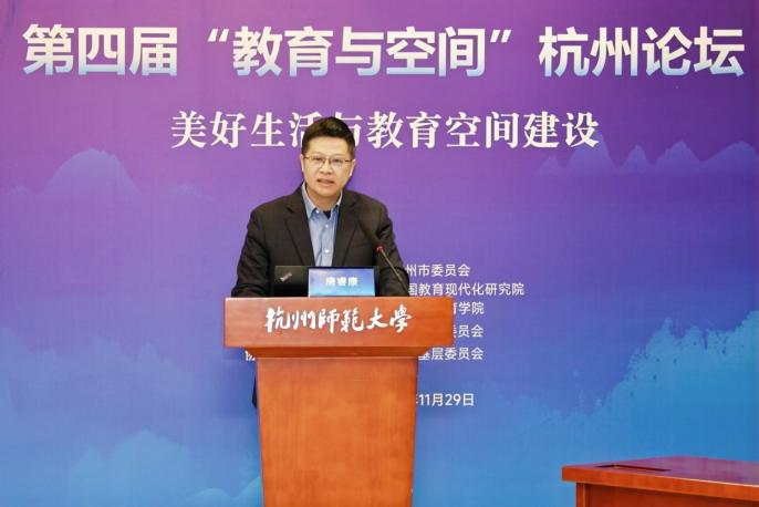 的发展,强调了教育空间的重要性,并展望了AI时代的教育变革。唐校长对出席会议的各位嘉宾表示衷心的感谢,向参加本届论坛的各位专家学者表示热烈的欢迎。他提出,教育空间建设的质量直接关系到人们美好生活的实现,如何通过教育空间的建设与重构回应“上好学”的民生期待,是新时代教育高质量发展必须回答的重要命题。本次论坛是杭师大与民盟之间深厚友谊的见证,也是双方持续携手服务教育、回应民生期盼的生动实践。他希望各位专家以论坛为契机,在促进在美好生活与教育空间建设的融合发展上深入交流,激荡思想,为中国式现代化贡献更多教育智慧。民盟杭州市委会专职副主委申屠敏参加了本次论坛。